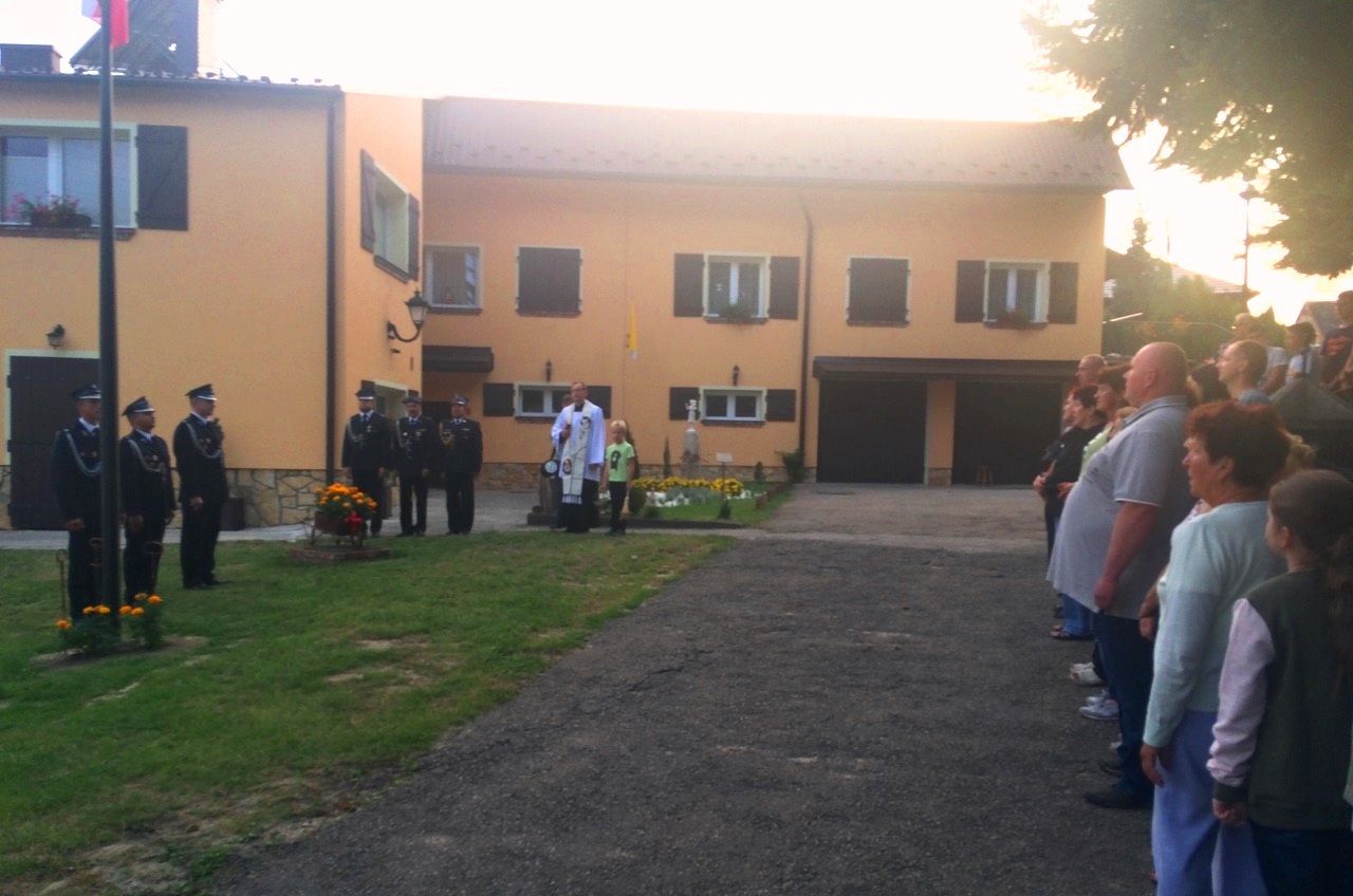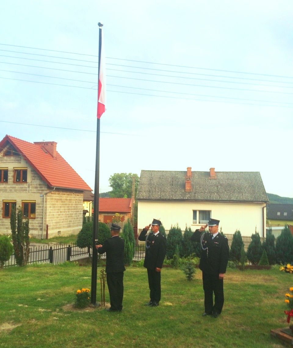 Uroczystego podniesienia flagi państwowej Rzeczypospolitej Polskiej w obecności wiernych i duchownych parafii Wniebowzięcia Najświętszej Maryi Panny w Zagórzu dokonał poczet flagowy wystawiony przez Ochotniczą Straż Pożarną w składzie: