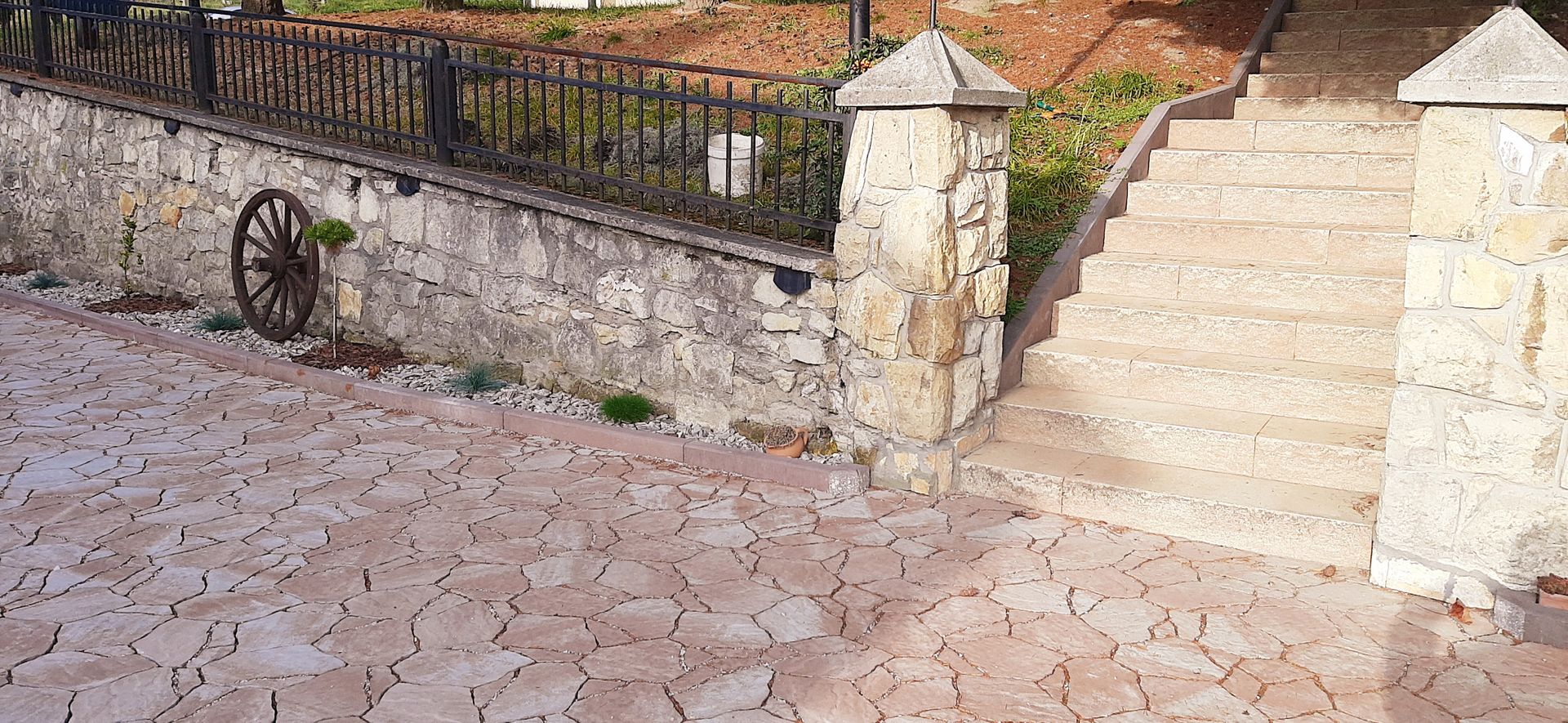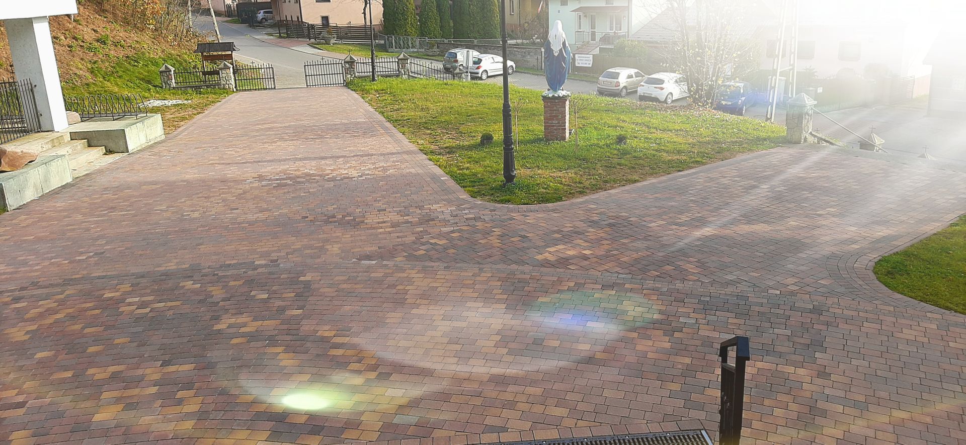 Po blisko dwóch latach zakończylismy remont a właściwie budowę od podstaw nowego obejścia Domu Bożego oraz plebanii. Wykonane zostały następujące rzeczy: odwodnienie terenu od strony północnej kościoła, nasadzenia roślinne skarpy, zabezpiecznie przed wilgocią fundamentów, kamienna opaska przy elewacji, chodnik procesyjny wokół kościoła, plac przed wejściem głównym, wyprofilowanie terenów zielonych, dojścia do kaplicy dolnej, przedpogrzebowej, krzyża misyjnego, kamienia węgielnego, Latarni Umarłych oraz magazynu i toalety, schody od strony południowej, ażurowe miejsce parkingowe przy zakrystii, łącznik z plebanią, kamienny bruk w Zaułku Świętej Joanny, chodniczek do kancelarii, palisada przy klombach, podjazdy przy bramach.